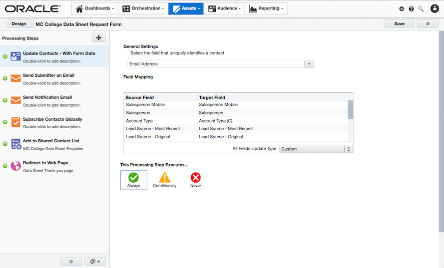Using the "Always", "Conditionally" and "Never" buttons you can start to personlise what happens when someone submits a form based on their responses.